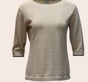 The ultra luxe pima cotton is top quality and soft as it gets for long lasting wear. Comfort boat neck with contrast tipping Drop shoulder seams Elbow sleeve 100% Pima cotton Machine wash cold, dry flat Made in Peru