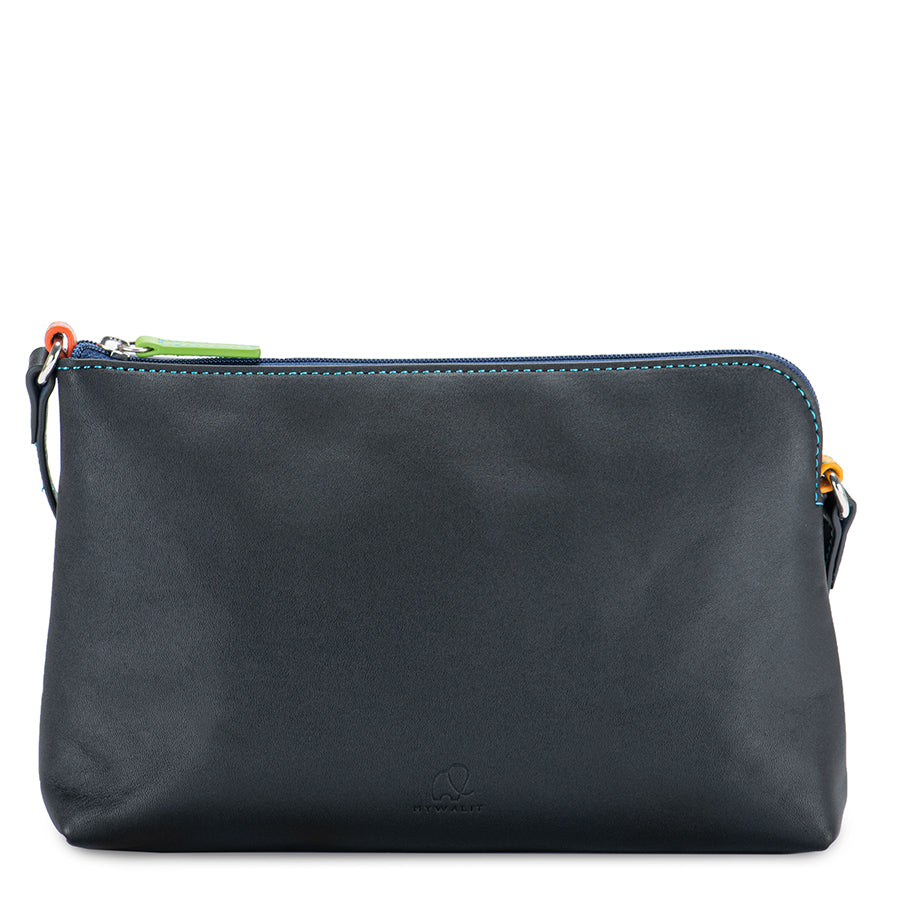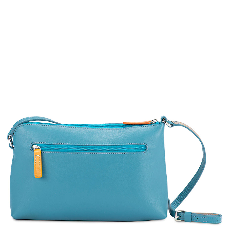 Small Leather Cross Body Soft nappa leather with contrast color details Adjustable strap, external zip, internal pocket
