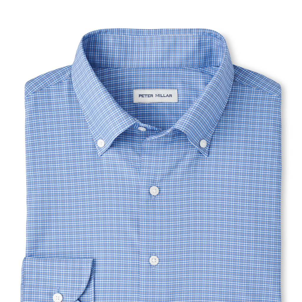 A signature performance fabric provides stretch, moisture-wicking and easy-care properties