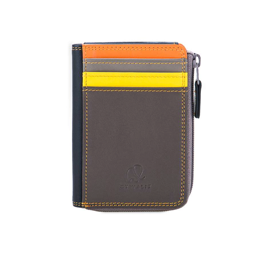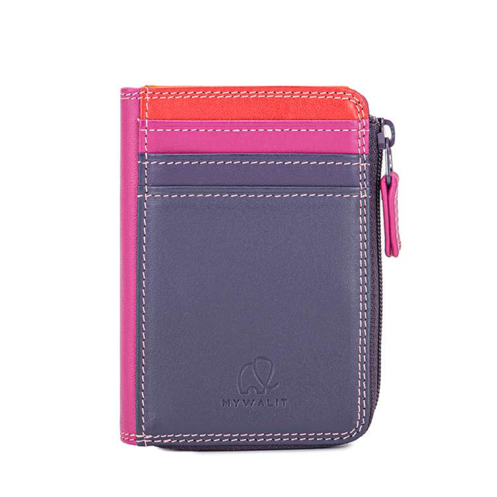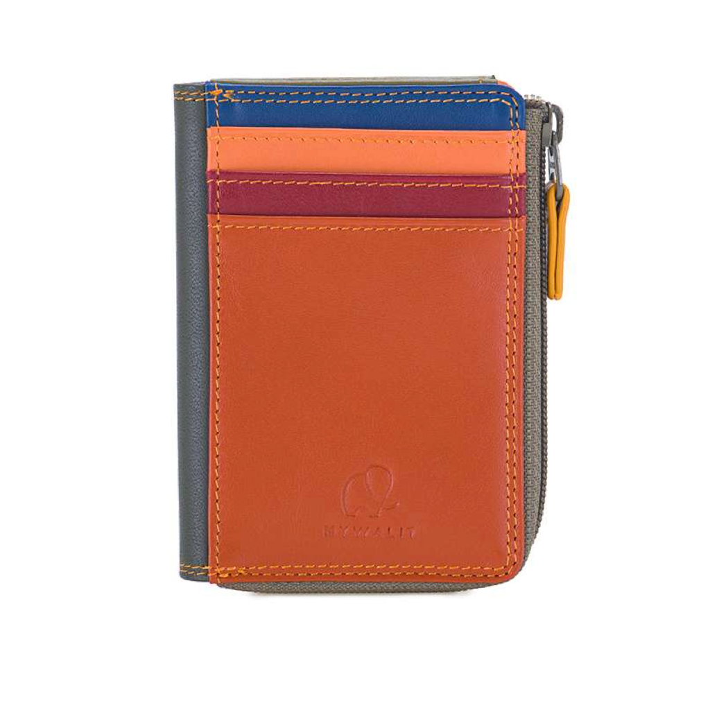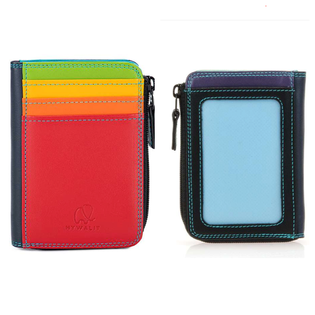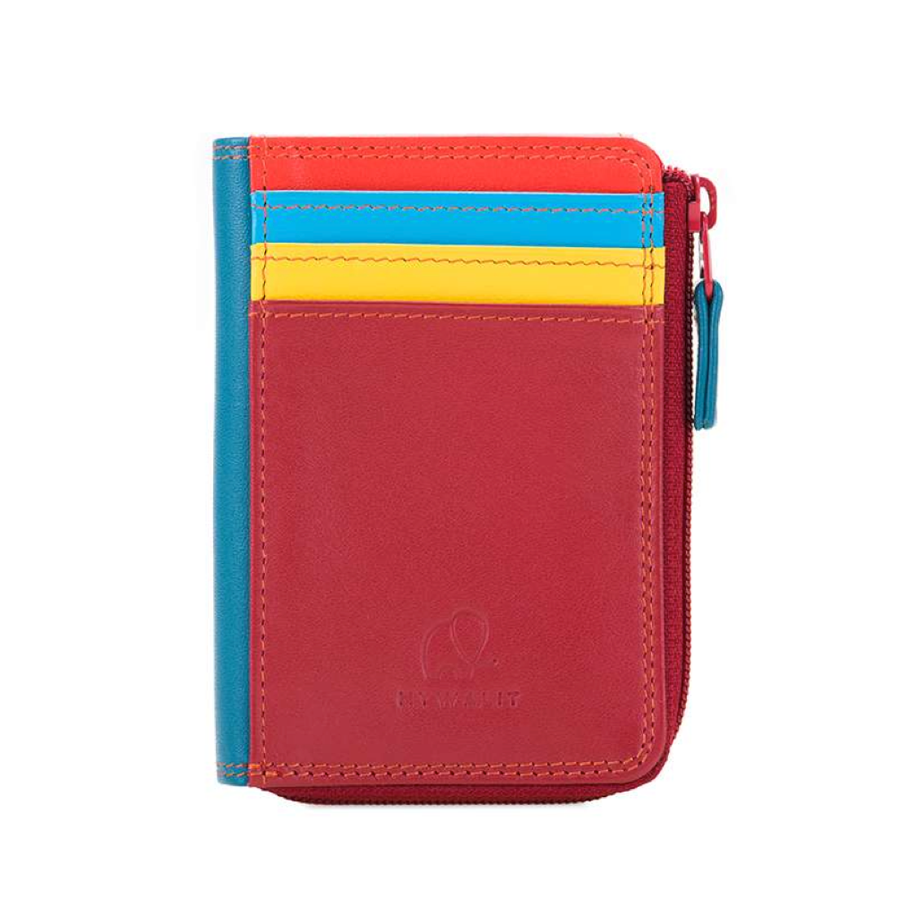 Ideal for when you're tight on space, this mini miracle holds cash or receipts and 4 credit cards. The central zip compartment fits a European ID. Made in a fine, smooth leather with exquisite multiple colors.